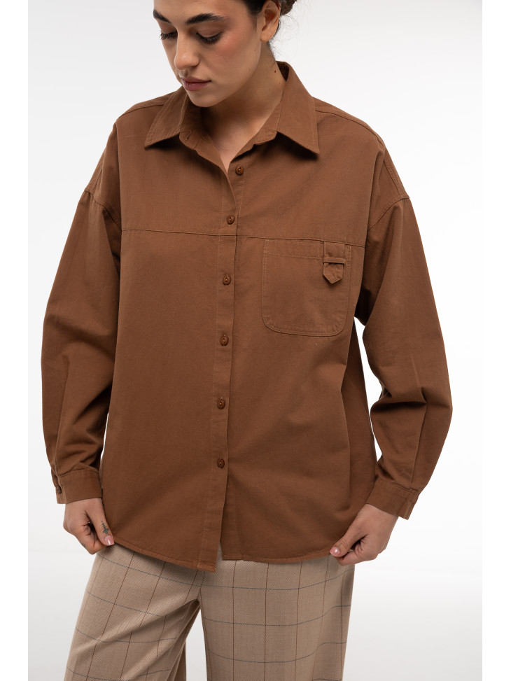 Сорочка “Діагональ” у відтінку кемл виконана з 100% бавовни з делікатним діагональним переплетенням, що додає глибини фактурі.